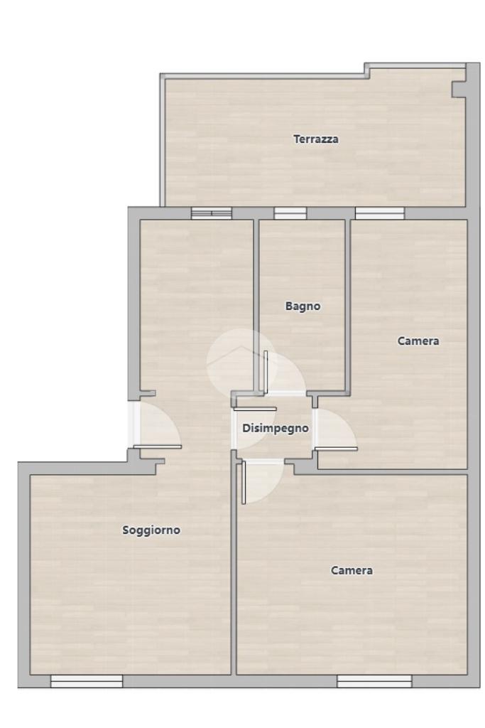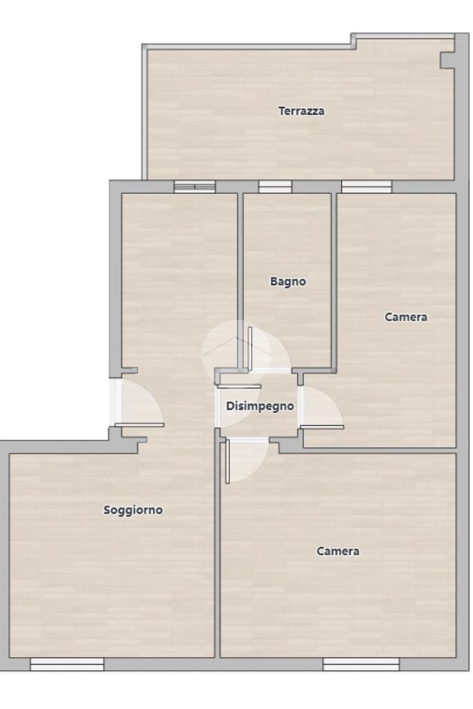 L'unità è caratterizzata da una doppia esposizione ed è composta al suo ingresso da un'ampia zona giorno con angolo cottura e accesso sulla terrazza, ideale per momenti di relax all'aperto. Proseguendo troviamo due camere da letto, di cui una matrimoniale, una singola e il bagno con vasca.