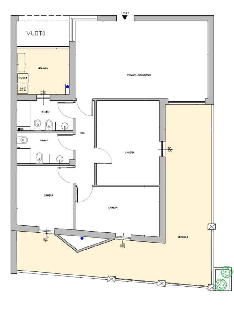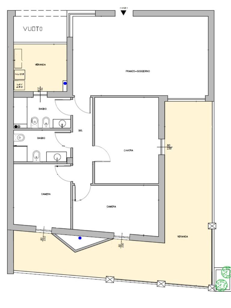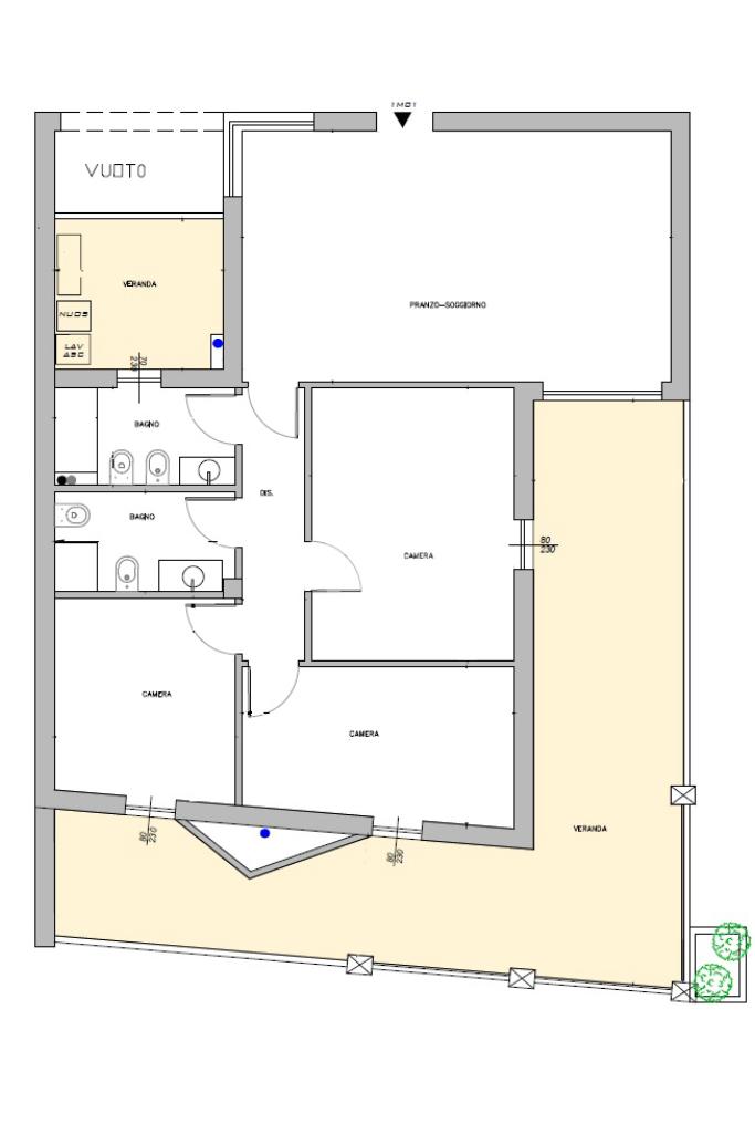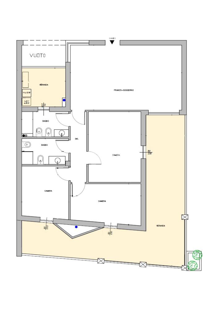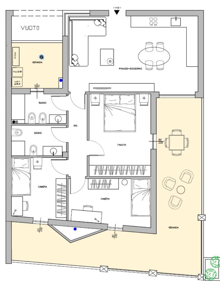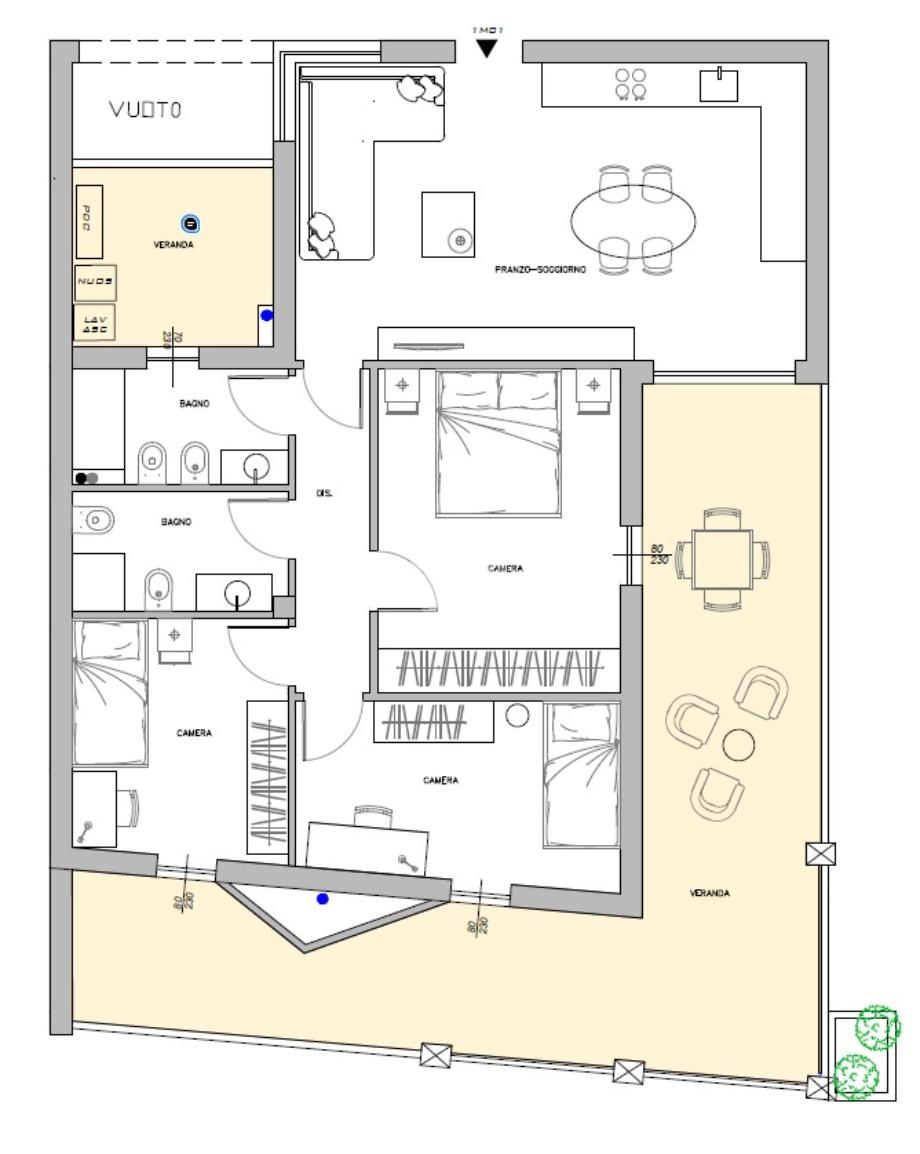L'appartamento dispone di spazi ben distribuiti e funzionali ed è composto dalla zona pranzo soggiorno, disimpegno, due bagni, uno dei quali con accesso ad una veranda, e tre camere da letto. La zona giorno e le camere hanno accesso tutte ad un'ampia veranda arredabile offrendo uno spazio esterno ideale per momenti di relax.