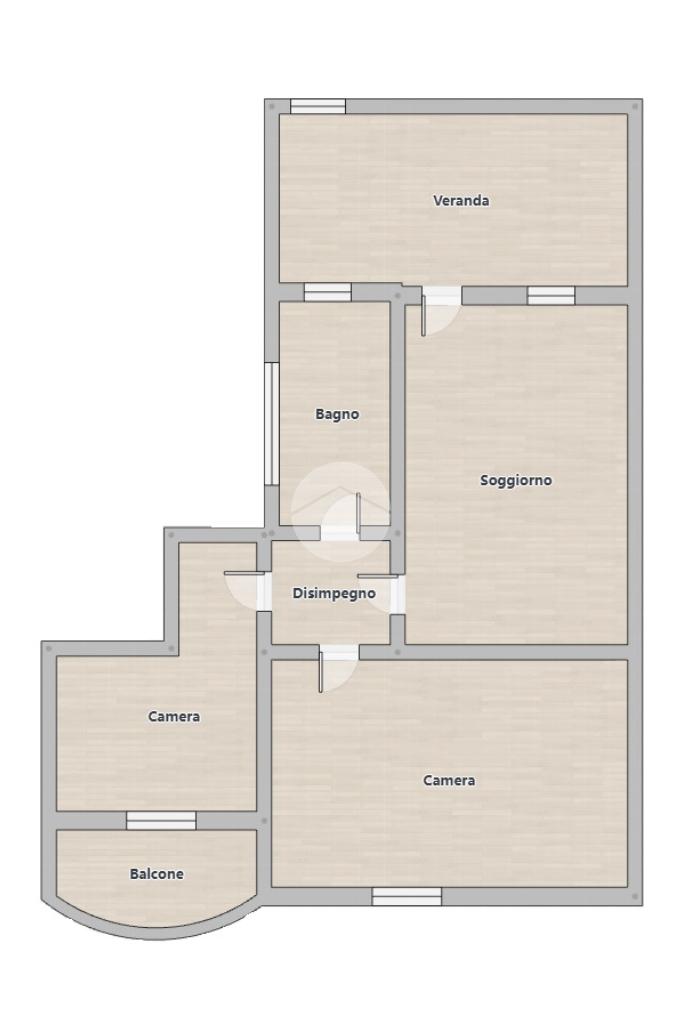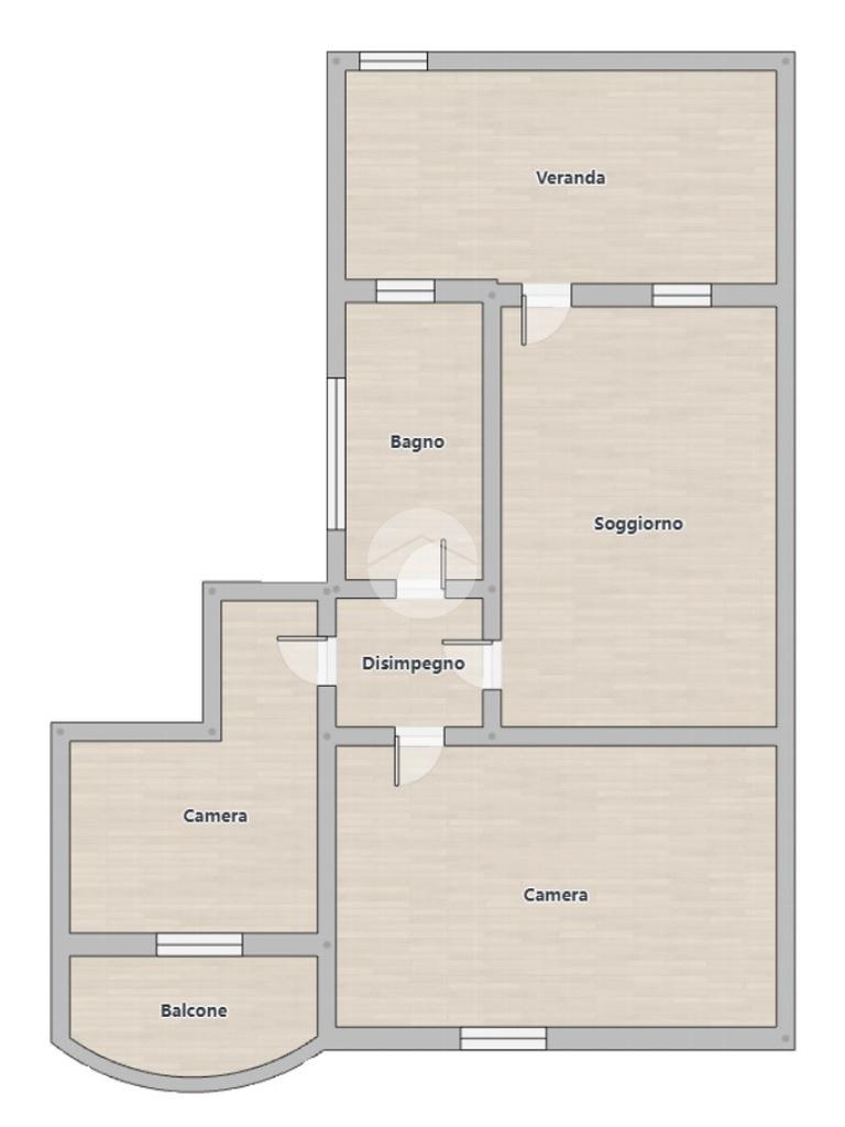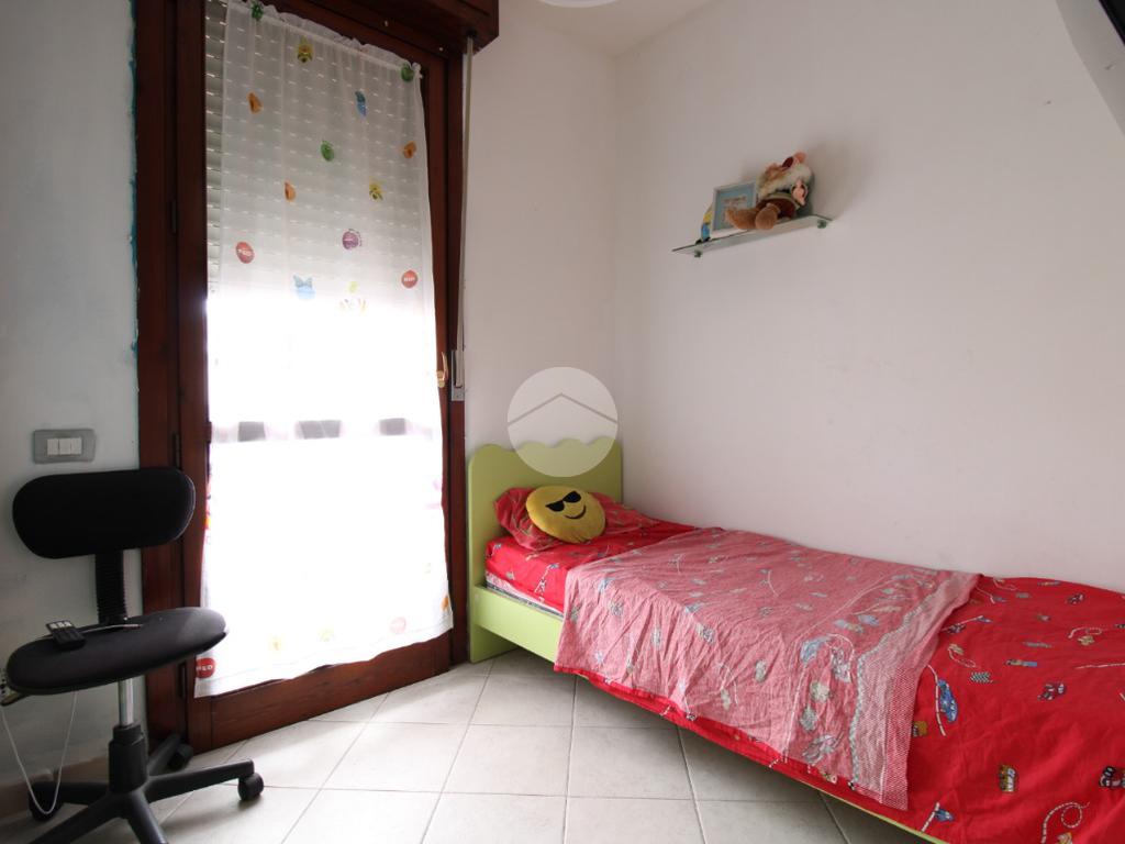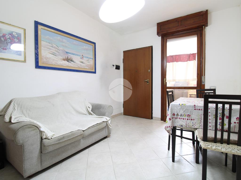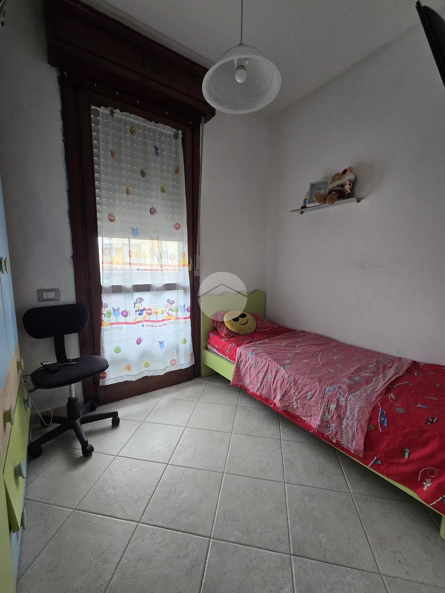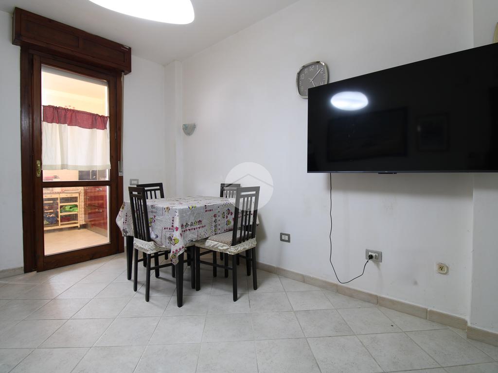 Una veranda arredabile ci conduce all'ingresso dell'appartamento composto da zona pranzo-soggiorno, disimpegno, bagno con vasca e due camere di cui una matrimoniale e una singola con affaccio sul balcone.