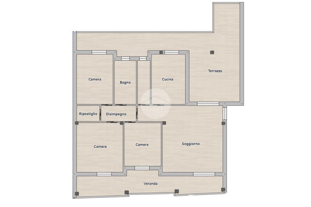 L'immobile gode di una doppia esposizione e si distingue per le ampie metrature e gli spazi ben distribuiti e funzionali. Al suo ingresso troviamo un accogliente soggiorno dal quale abbiamo accesso sia ad un'ampia terrazza arredabile che al balcone con vista sul parco. Proseguendo troviamo la cucina abitabile, tre camere, di cui una matrimoniale e due singole, bagno e doppio servizio e un comodo ripostiglio.