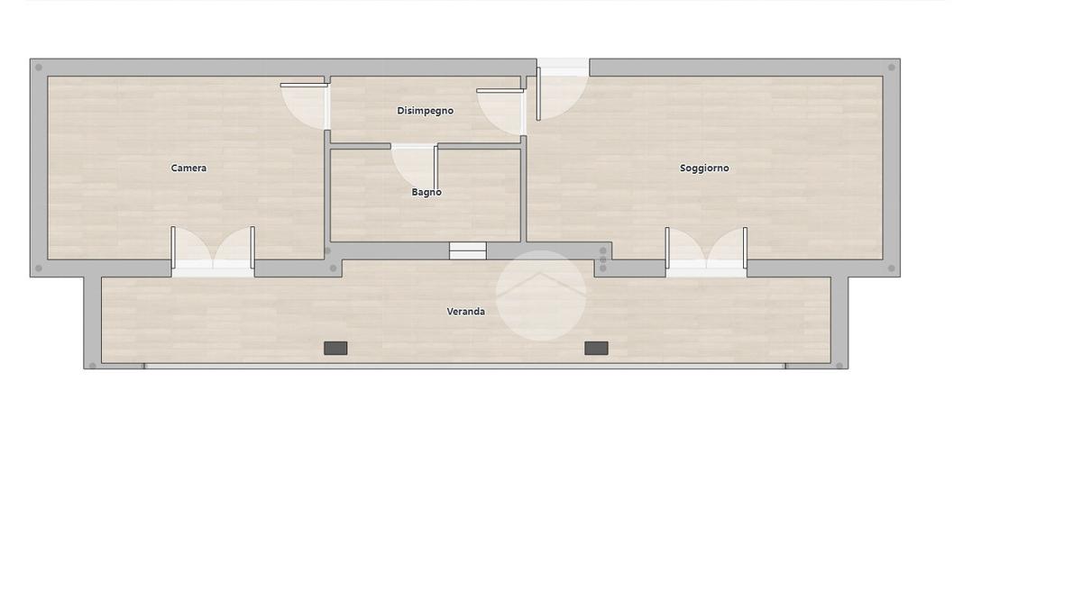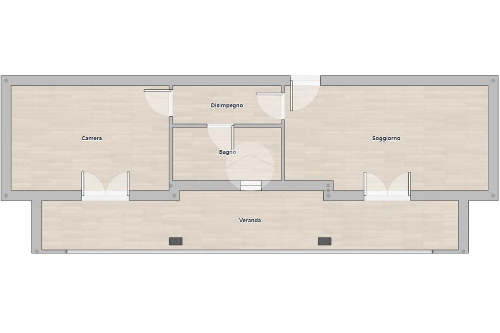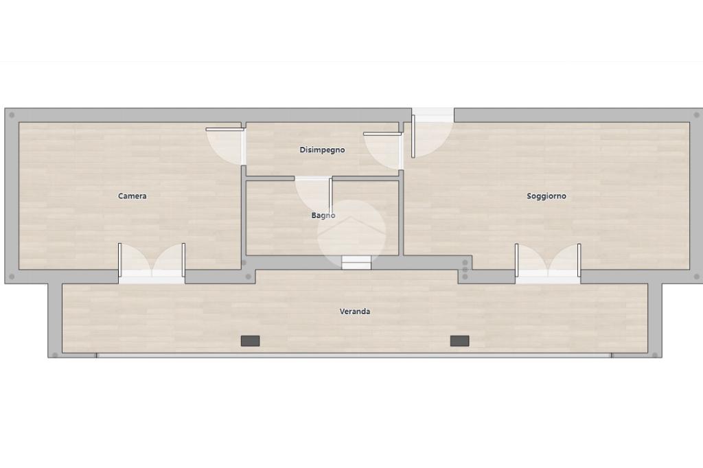 L'appartamento è composto da ingresso con zona pranzo-soggiorno con accesso ad un'ampia veranda arredabile, disimpegno che ci conduce al bagno e alla camera matrimoniale, anch'essa con accesso sulla veranda.