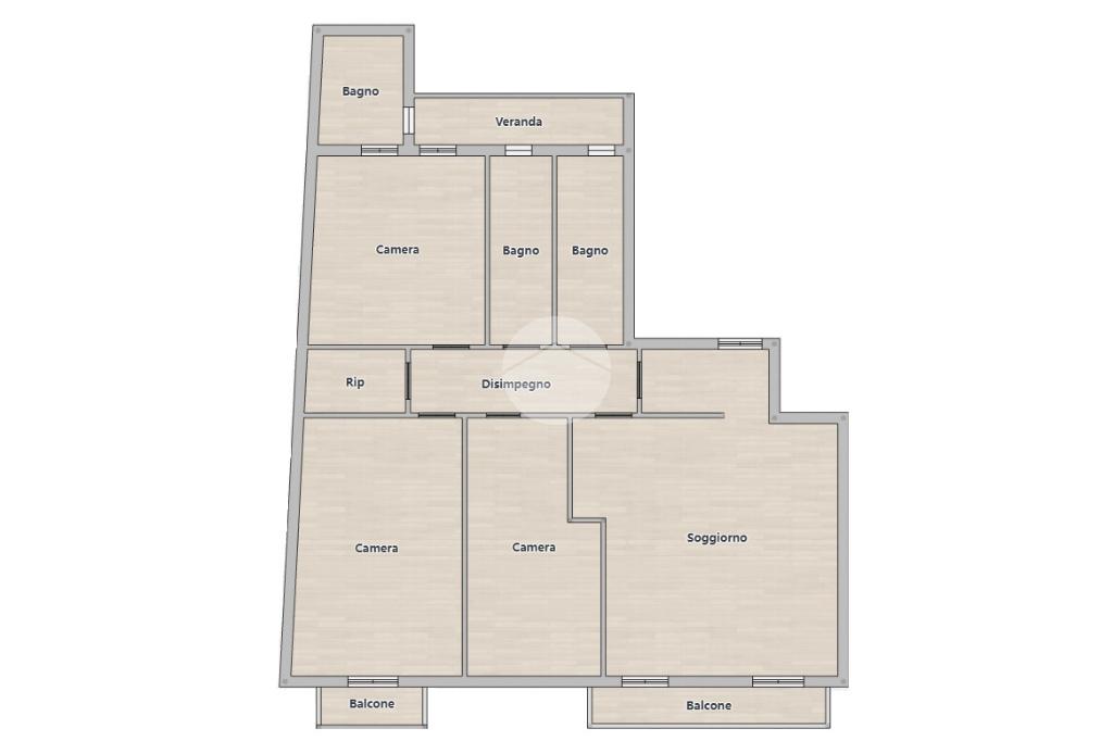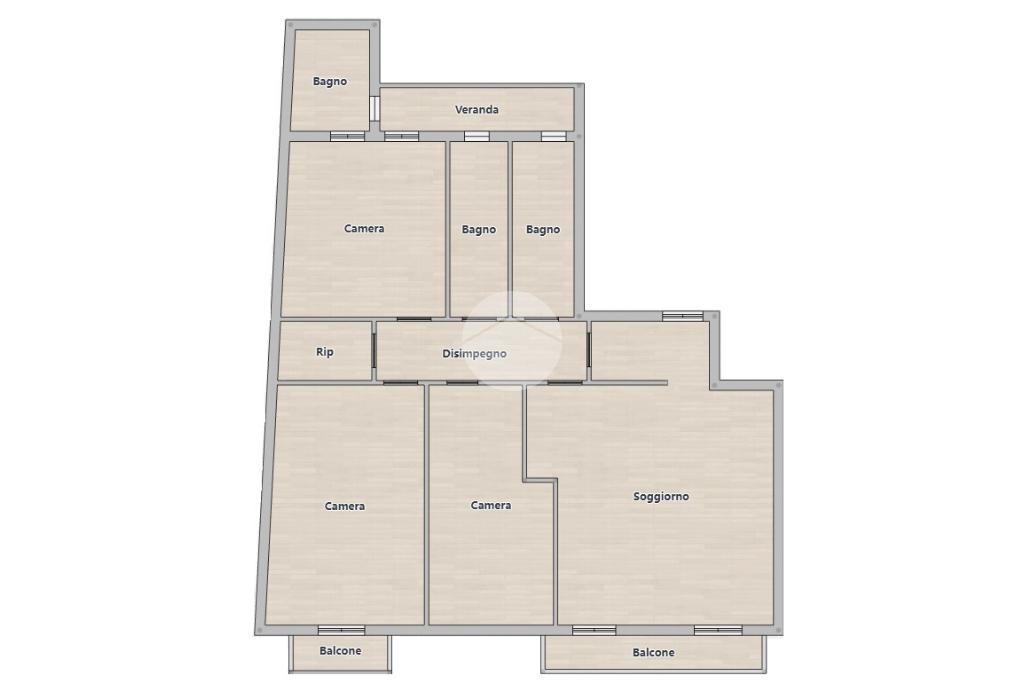 L'immobile presenta al suo ingresso un'ampia zona giorno con angolo cottura e accesso al balcone. Dal disimpegno accediamo ai due bagni e alle tre camere da letto, di cui una matrimoniale con veranda e bagno privato, e due singole, una delle quali con ulteriore spazio esterno. Completa l'unità un comodo ripostiglio.