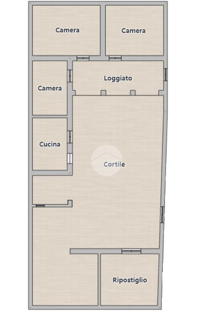 L'immobile è composto dal loggiato, tre camere da letto, cucina, ripostiglio e un ampio cortile facilmente arredabile e ideale per momenti di relax all'aperto.